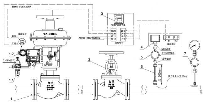 電動壓力調(diào)節(jié)閥介紹: ZAZP、ZDLP型分體式電動壓力調(diào)節(jié)閥采用智能電動調(diào)節(jié)閥、及智能PID調(diào)節(jié)器+壓力變送器及3芯屏蔽線等附件組成,控制精度可達(dá)+0.1%,調(diào)節(jié)性能及控制