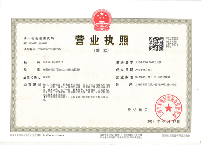 臺臣閥門 > 臺臣簡介 >資質(zhì)證書